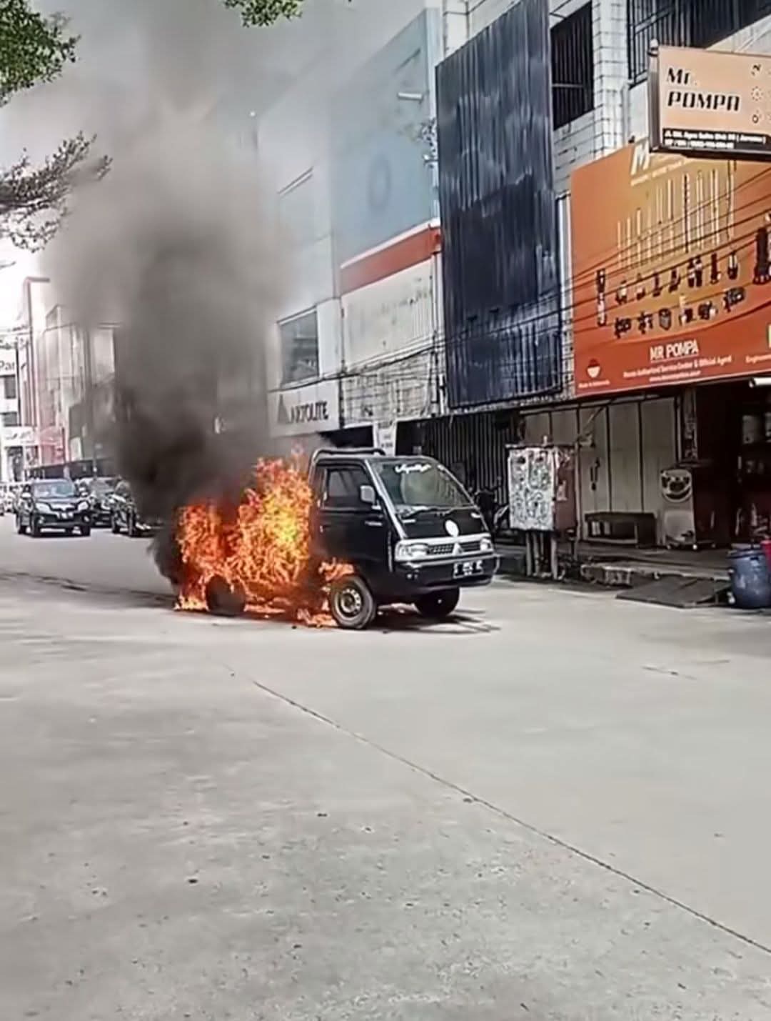 Mobil Pickup Terbakar di Kawasan Pasar Johar, Diduga Akibat Korsleting Listrik