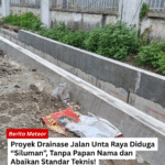 Semarang – Jalan Unta Raya menjadi sorotan setelah ditemukan pekerjaan pemasangan. saluran drainase jenis U-Ditch tanpa dilengkapi papan nama proyek di lokasi kegiatan.